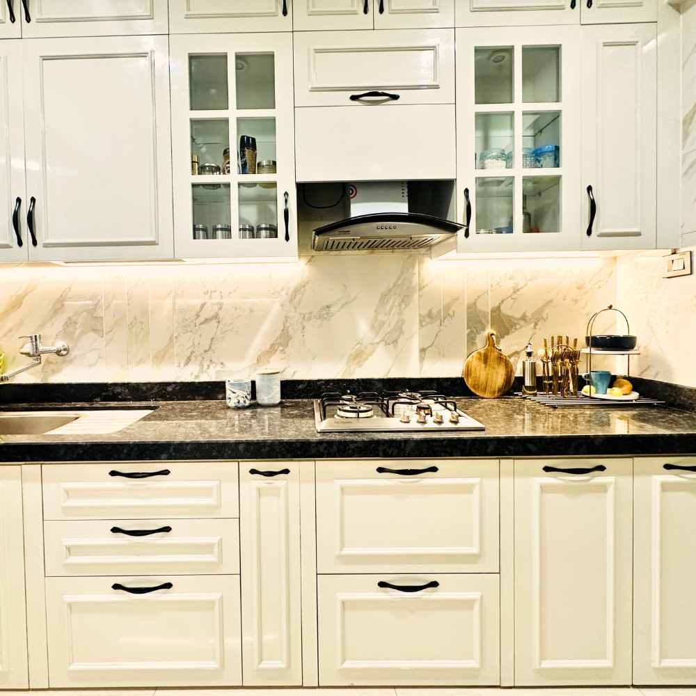 Design of a completed kitchen, in classical style, conceptualised and implemented by a kitchen designer/brand owner (the Project)