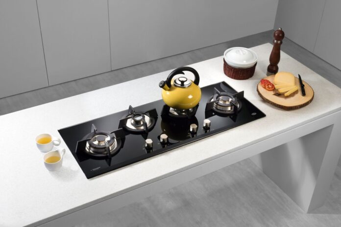 KAFF’s elegant hob KH1004BG features four powerful brass burners – two heavy duty triple-flame and two dual-flame. With black tempered glass (8 mm) body having diamond cut tapered front, the cook top enhances the kitchen’s functionality through features such as auto electric ignition, heavy-duty cast-iron grills, SS dip tray, and ergonomic easy-grip knobs. Dimensions for slab are 862×322 mm (inner cut) and 1005×380 mm (outer cut).